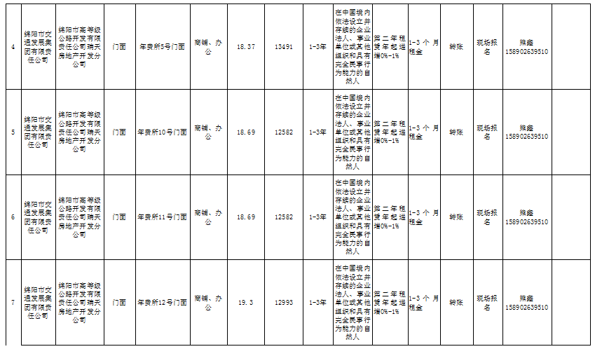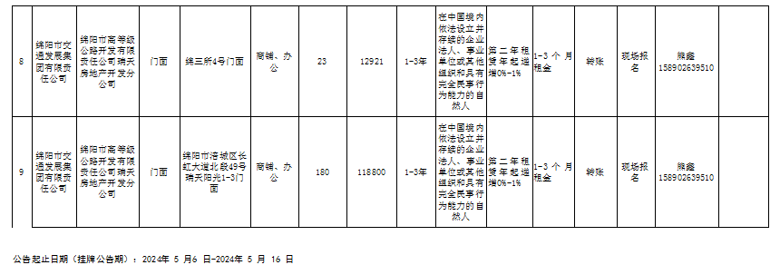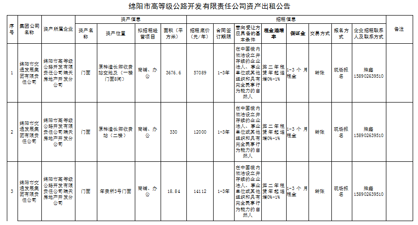 綿陽市高等級公路開發(fā)有限責(zé)任公司資產(chǎn)出租公告